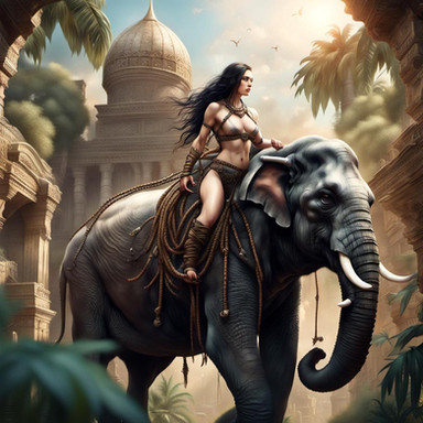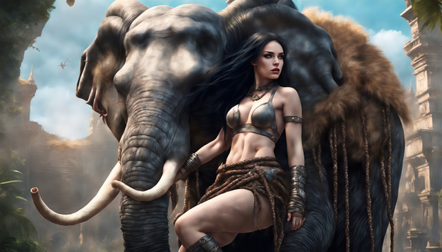 #ai #beautifulsky #giantanimal #women #bigbreasts #cavewoman #elephant #leopardbikini