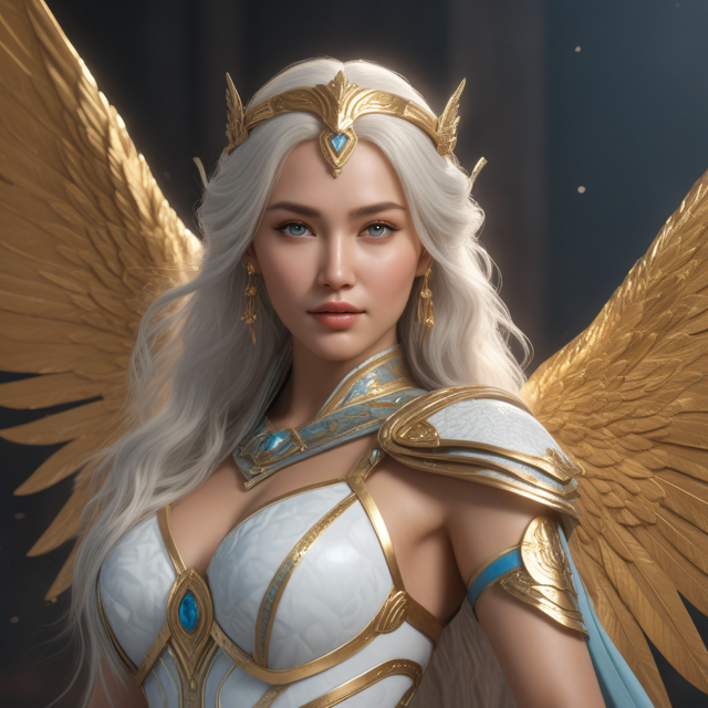 #ai #angelic #angelwings #battle #beautifulwomen #darkfantasy #delicate #fantasyart #fantasycharacter #goldenhair #mythicalcreature #photorealism #portraitbeauty #sensual #angelofinnocence #goddessworship
