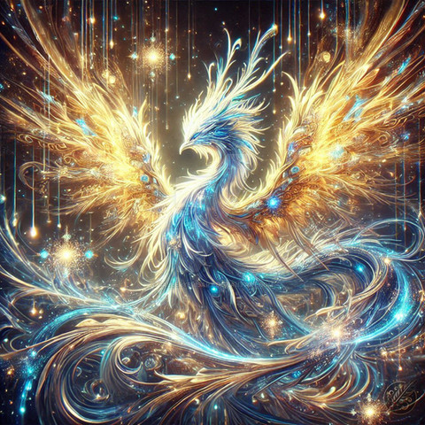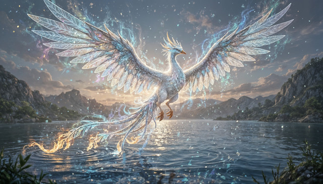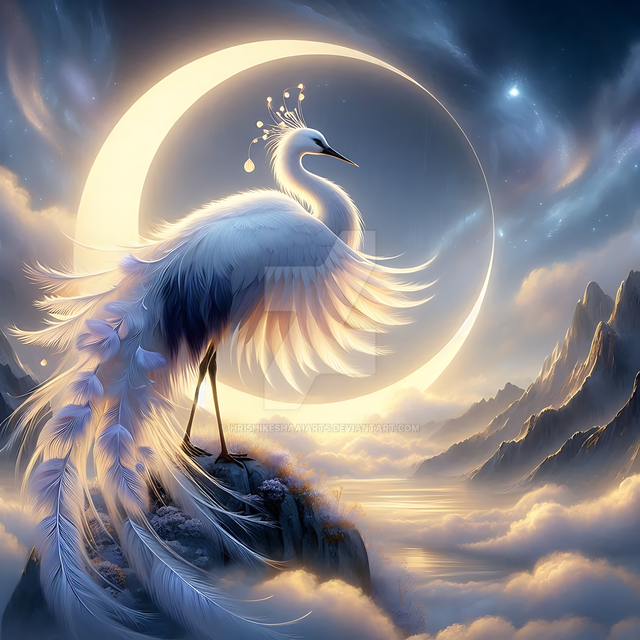 #being #bird #creature #crystal #digital #elements #fantasy #feathers #gold #heavenly #illustration #landscape #magical #mythical #oriental #phoenix #white #winged #art