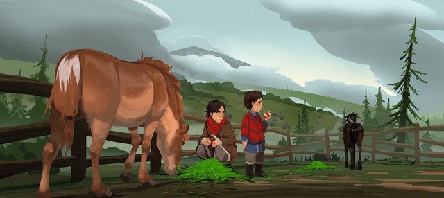 #arpg #horse #illustration #rider #morenezen #clouds #color #digitalart #digitalpainting #forest #horseandrider #marker #mountain #rocks #sketch #trees #skywardsword