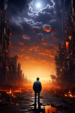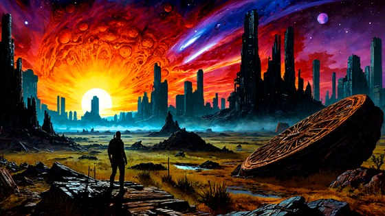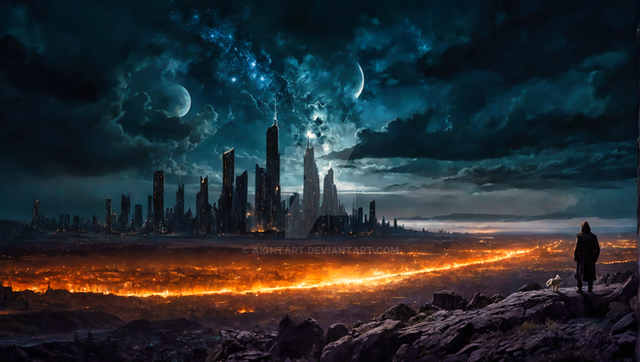 #atmospheric #dystopian #futuristic #galaxy #moon #night #otherworldly #postapocalyptic #scificoncept #sky #space #sunset #fire