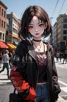 It's your first time visiting Mei's home city. She gives you a tour to all the hot spots. She's proudly wearing the jacket you gifted her and is happy to introduce you to everyone she knows.
