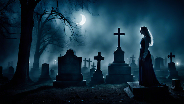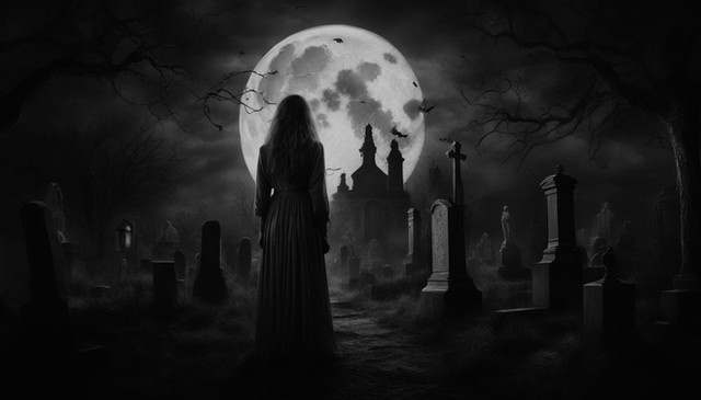 #ai #creepy #dress #female #fullmoon #girl #horror #moon #wallpaper #woman #cemetery #desktopwallpaper #graveyard #halloween #halloweenwallpaper #macabrehorror #cemeterygraveyard #fullmoonnight #ai_generated #aigeneratedart #drawtober2023 #drawtoberpart2
