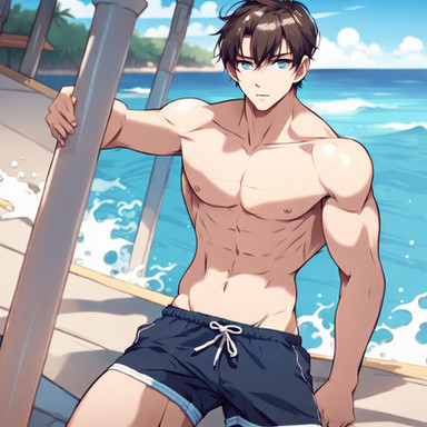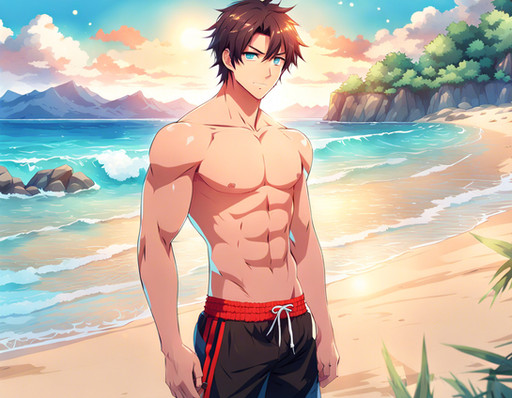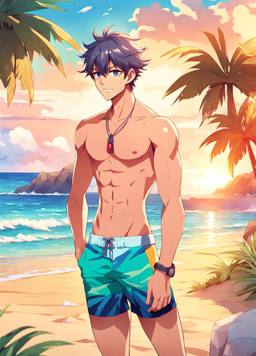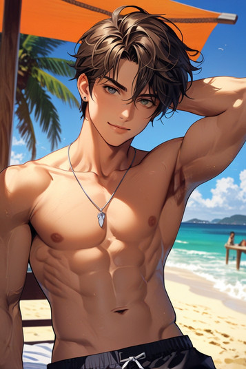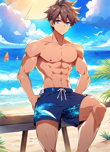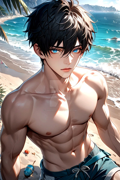 #ai #anime #animeboy #animemale #animeman #barechested #beach #boy #guy #happy #male #man #swimsuit #swimwear #barechestedmale #ai_generated #ai_generated_art