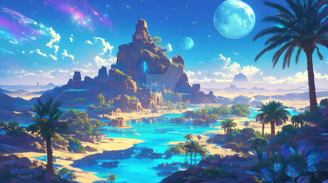 #ai #anime #illustration #oasis #scenery #wallpaper #desert #desertlandscape #desktopbackground #desktopwallpaper #landscape #landscapescenery #ai_generated #ai_generated_art
