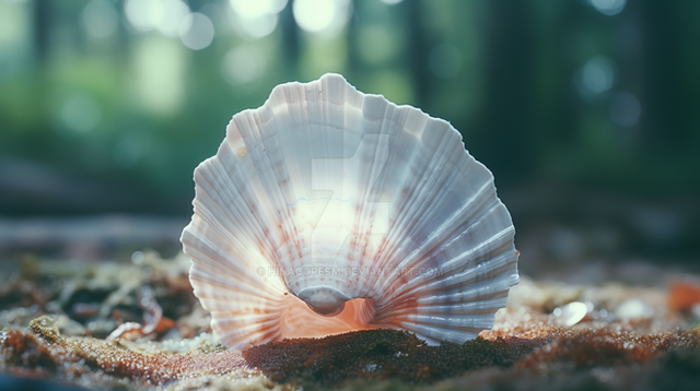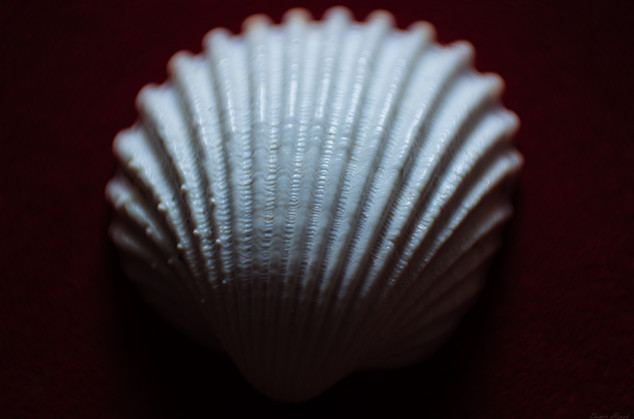 A deep-sea scallop's shell on an iron table.Model: Canon EOS 30D + Canon EF 24-105 mm f/4 L IS USM.