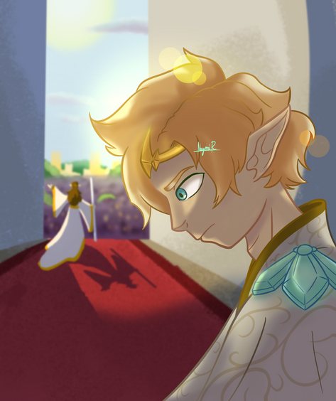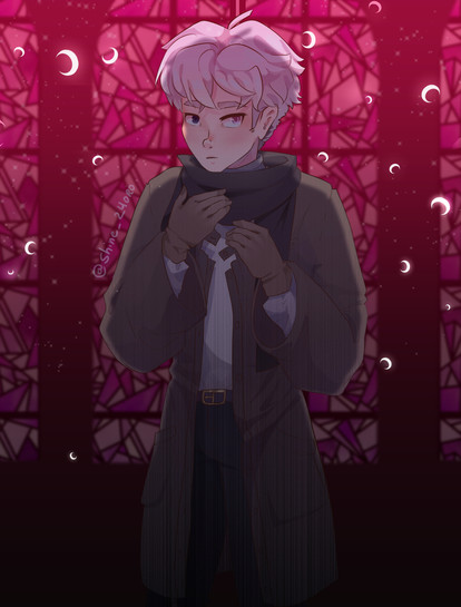 I was having trouble trying to decide what sky I wanted behind the window. It was between a starry night and a sunset, but they both sounded too 'happy' to me. Therefore, I opted for a dark, empty night sky with faint signs of stars. It was what I felt most reflected Matthias's emotions in that moment.