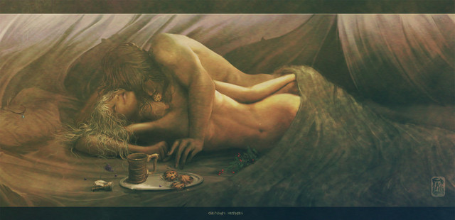 Well, it's nearly the end of February, so I figured I'd end it with Evaryr and Kalysia's wedding kiss from: [link] Enjoy.And may I never, EVER, use DA's search function for reference on kissing images again. This place needs a filter system... badly.