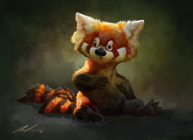 The concept here is just so cute, but the art is AMAZING! Β Your lighting is fantastic. Β It seems like that forest could be creepy, but this one light spot is just so warm and fun. Β And the detail in the fur just huffs and puffs and blows me away!