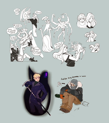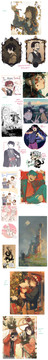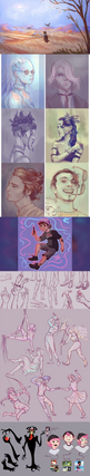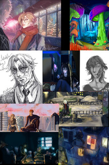 a mix of fairly old and fairly recent drawings and doodles/speedy paintings. Most of the paintings were little experiementssome are original characters- the litle girl paintings are no one in particular and the guy behind yellow and black is a little fanart drawing from an anime called Gangsta.