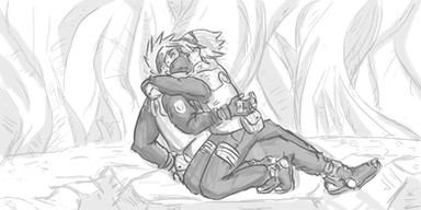 I caught up with the Naruto manga relatively recently and it occurred to me that Kakashi could use some rescuing, I found myself wanting to draw him being carried bridal style. I also thought perhaps proud and prim Yugito would have made an interesting candidate to get under detached and disheveled Kakashi's defenses.Related content