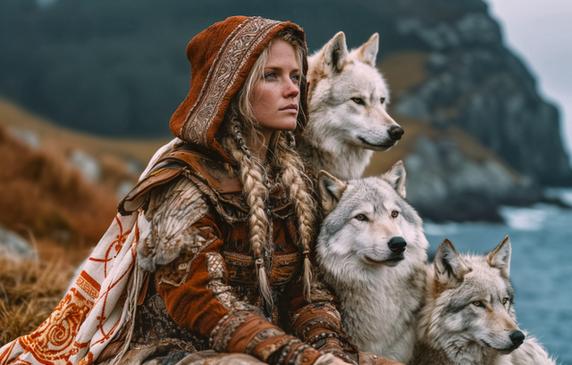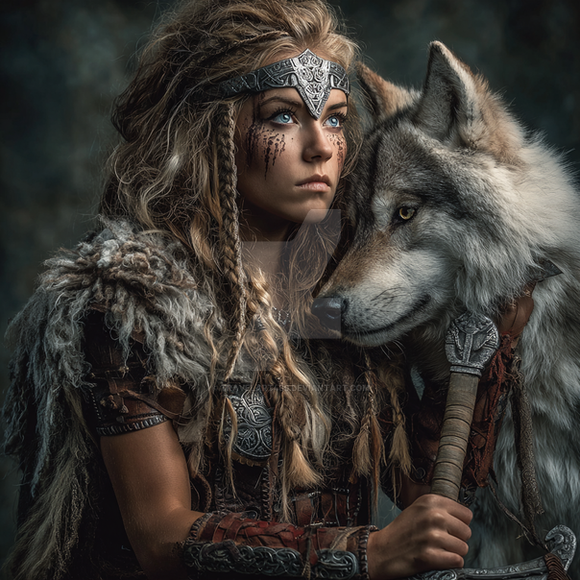 #portrait #warrior #adventure #animal #armor #braid #cold #companions #digital #fantasy #friends #fur #gaze #hair #illustration #loyalty #medieval #mountains #mythology #nature #nordic #predator #snow #survival #viking #white #wilderness #winter #wolf #woman