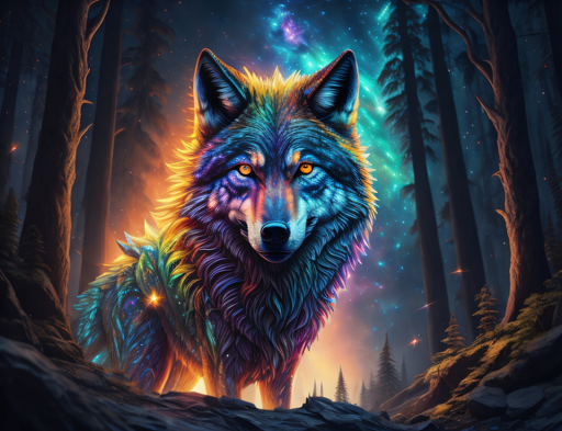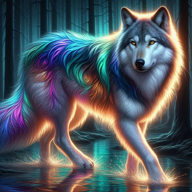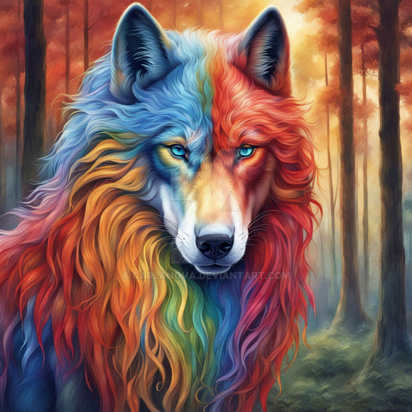 #adventure #creature #enchantment #fantasy #forest #howl #insight #intuition #journey #legend #magic #moon #mystery #myth #nature #night #pack #predator #quest #spell #spirit #story #tale #wild #wilderness #wisdom #wise #wolf #aiartwork #rainbow