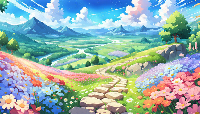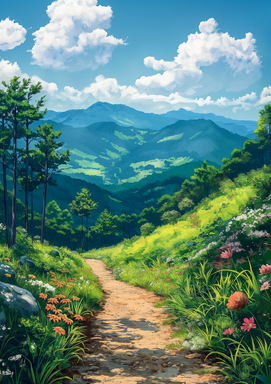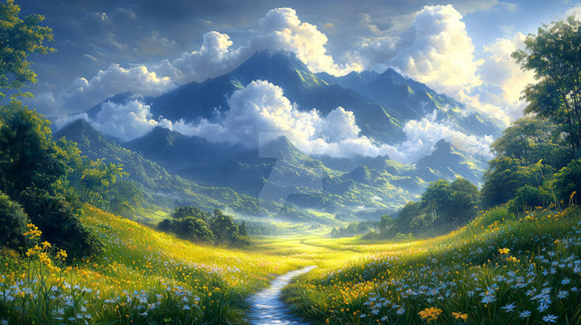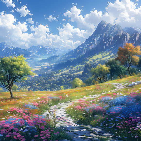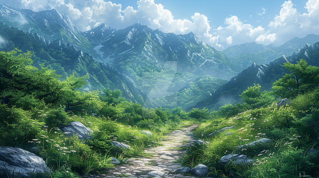 #beauty #blooming #bright #earth #environment #exploration #flowers #green #hills #horizon #journey #landscape #lush #majestic #mountain #nature #outdoors #panoramic #path #peaceful #scenery #serene #tranquil #travel #valley #vegetation #view #vista #wilderness #aiartwork