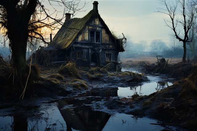 #abandoned #ancient #cabin #cottage #dark #deserted #dusk #elderly #evening #forest #forsaken #gloomy #hut #isolation #lonely #mature #neglected #night #retreat #shack #shadow #solitude #sunset #trees #twilight #wilderness #woods #old #aiartwork