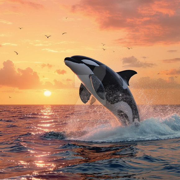 #animal #beauty #black #dive #fin #fish #freedom #grace #hunt #killerwhale #mammal #marine #nature #ocean #orca #pattern #pod #power #predator #sea #speed #splash #strength #sunset #swim #wave #white #wild #aiartwork