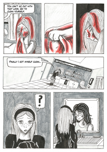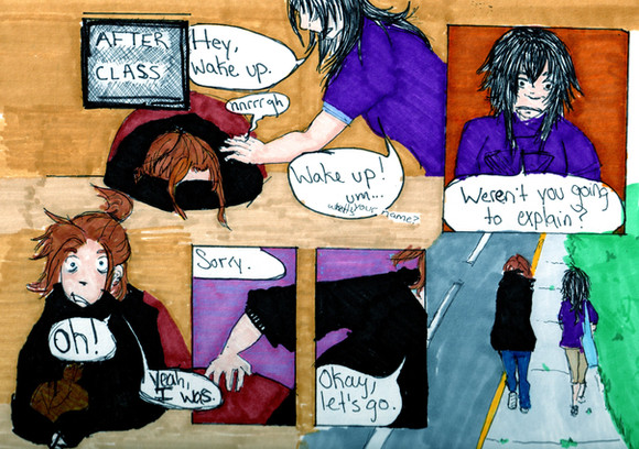 I doodled this one while I was waiting to get my foodhandler's card. Playing with the Megatokyo/Lain style again. Pretty happy with this one, too.Yay for doodles!