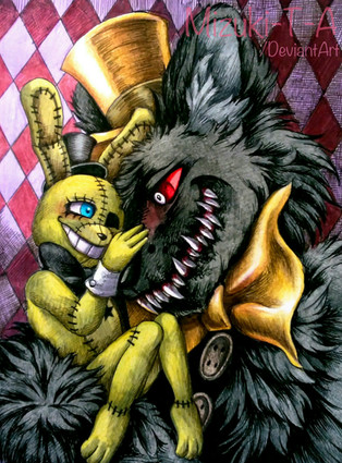EDIT: Fixed his hand... or maybe I should say un-fixed XD And I added some shading to the wires.Took my part in Negaduck9 's challenge to draw Nightmare sitting on Springtrap, based off this page of her comic "Springaling" :fav.me/d9zn4un