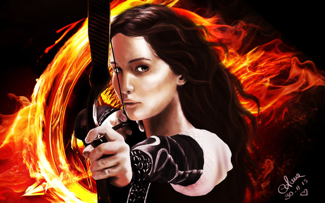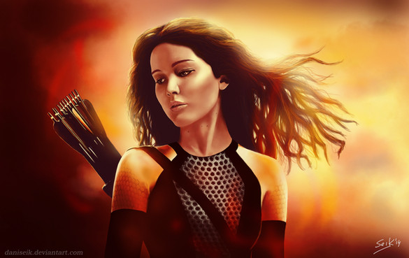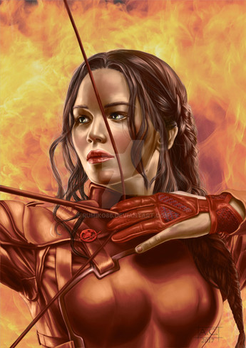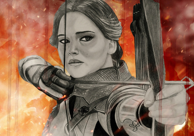 awesome! I love the fiery background! you did a splendid job coloring and drawing Katniss (I'd say you drew her perfectly!). She would be very proud of you Β Β