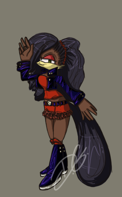 so ive been tryin to post mostly on twitter now since its quicker than on here :/she was posted awhile back! kjfnfn anyway, meet Delilah, or Del for short! Her lore takes place in Sonic Riders and she's the leader of a black market criminal empire and a street fighter!