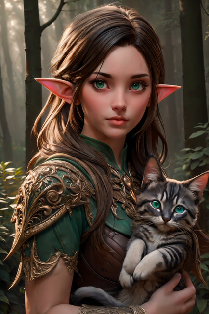 A young mage studying with her cat.Aiart stable diffusion