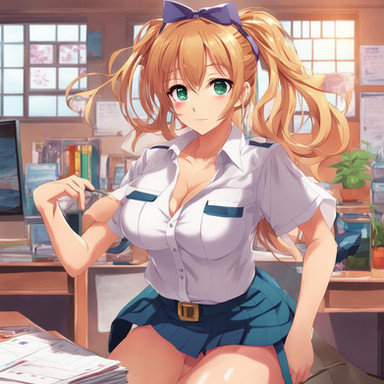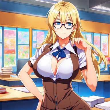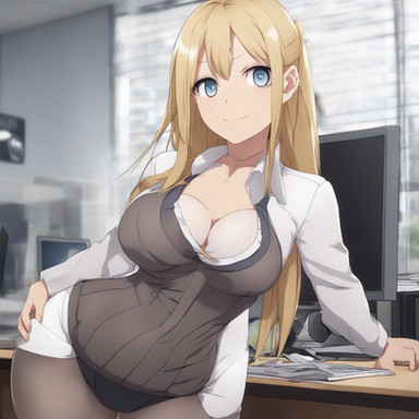 #ai #anime #bigbreasts #bigbutt #black #blonde #blouse #curvy #skirt #white #women #widehips #aiart #thickthighs #officelady