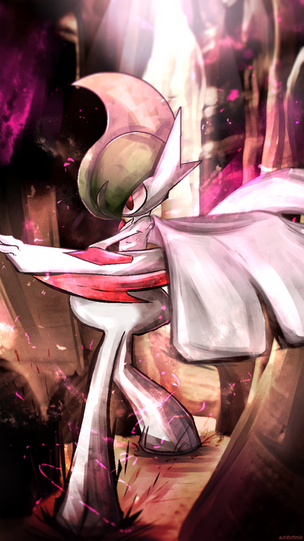 Here's what I think he would look like when he Mega evolves but has Gardevoir genes! Which is funny to say, since technically Gallade and Gardevoir are the same species LOL however they do have very different appearances, and I mostly did this one for the hell of it! Basically just imagine he was in the middle of evolving into a Gardevoir, then grabbed a Dawn Stone, and the result was a hybrid between Gallade and Gardevoir u w u Naturally, I chose to call it Valor Dancer because Gallade I envision as a very honorable fighter while Gardevoir is likened to a ballroom dancer!