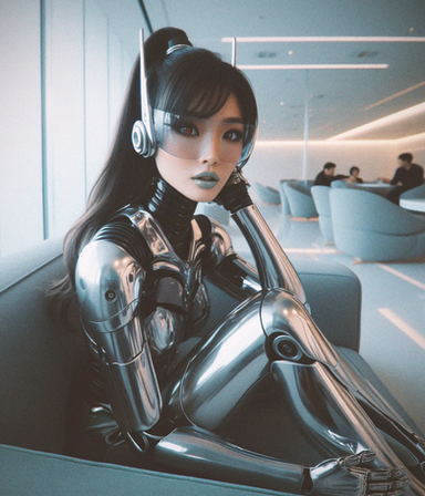 #photorealistic #scifi #body #beauty #android #cyborg #dreamshaper #girl #pinupgirl #purple #robot #robotization #sofa #suit