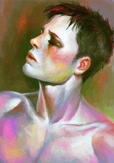 Wow the colors are stunning, especially with the brushstrokes/texture. I love how you managed to get an overall softness, yet keep the intense lighting and detailed features. Love the lips and expression~~