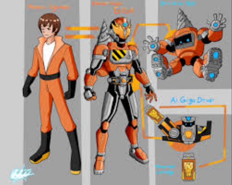 My OC in Kamen Rider Ryuki universeKamen Rider DRII and his contract monster DRILLMOLE.
