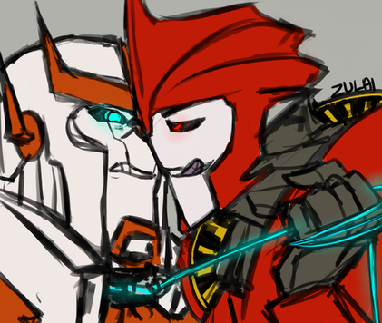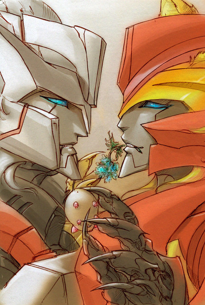 Your art does too much good to them... they look so beautiful in your style! The optics on Rodimus make his face look so full of yearning the way he looks at Drift, and with the way they are holding each other with their noses touching, it just melts my spark. ^^