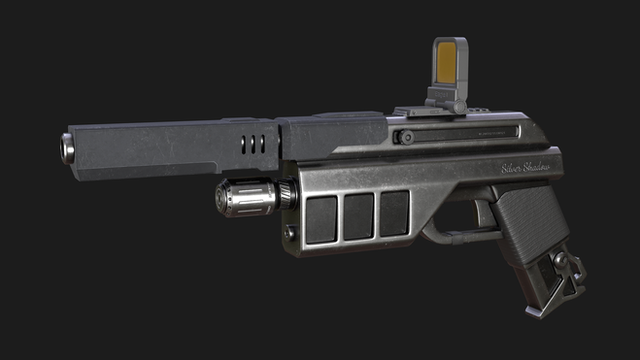 another old project for shadowrun. this one started out as a way to get a heavy pistol with more accuracy then any of the ones in the books (i have a very powerful adept gunslinger) but it ended up being a concept for a new type of weapon, i have seen nowhere else.its a rifle designed specifically for use with a ballistic shield in the other hand and provide better armor penetration then a pistol while still being usable one handed.