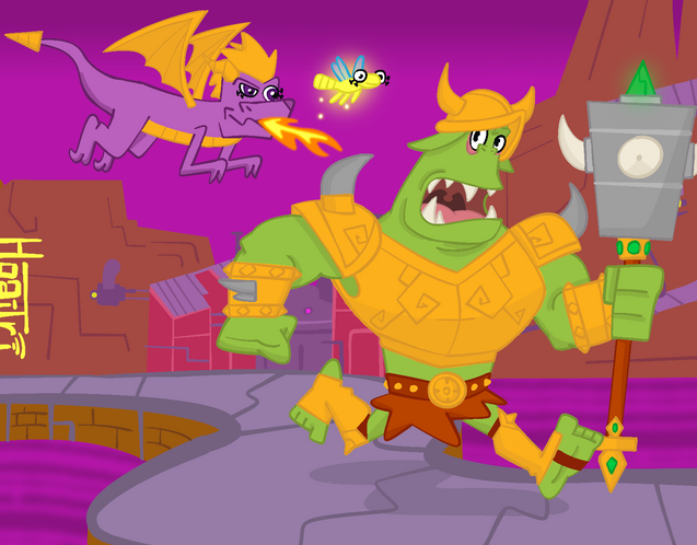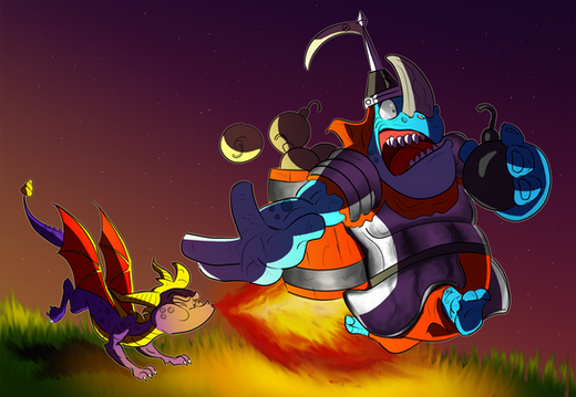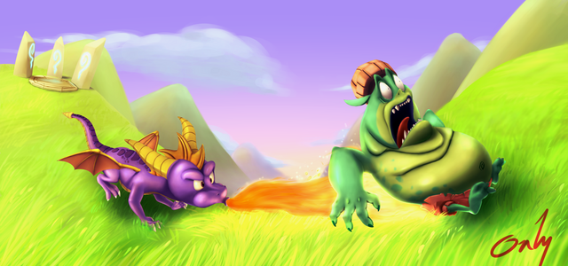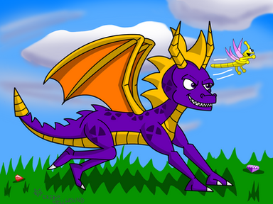 Art trade with She wanted a pic of Spyro running away from one of those yellow beast things from the level Alpine Ridge in Spyro The DragonI'm glad I finaly finished this, since I did the sketch for it weeks ago