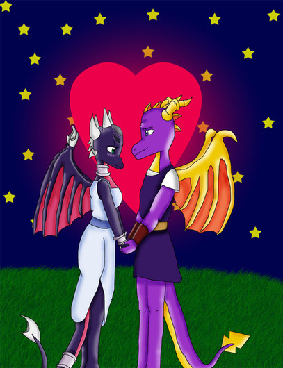 Do you mind if I submit another comment. The only mistake I spotted is 's eyes are supposed to be blue or light blue instead of green. That's what I remembered from the last time I played Spyro 2: Gateway To Glimmer. But the rest is awesome, cute and romantic and the lyrics totally fit with pictures in the poster.