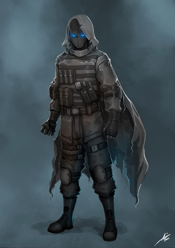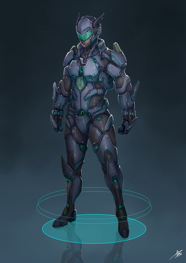 Nice armor, I like the contrast between the techy suit and the flowy cape, but what I'm really digging here is how you achieved that depth effect with the hazy lighting. Great job!