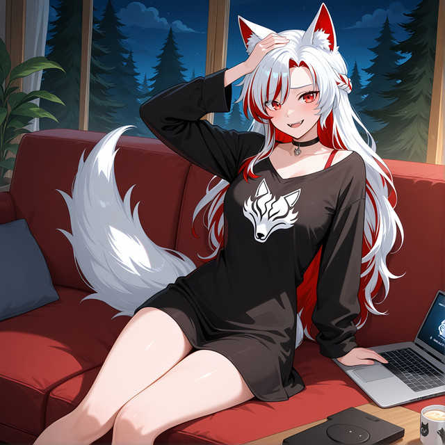 #digitalart #animegirl #kemonomimi #kitsune #anime #originalcharacter #digitalartwork #femboy #foxboy #hoodie #sofa #tea #updo #aiart #commissionsopen #fox_ears_and_tail #femboycharacter #aiartwork #aiartcommunity #stablediffusion