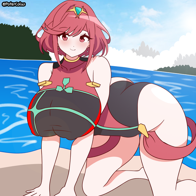 #beach #bigbreasts #cuteanimegirl #hugeboobs #pyra #swimsuit #thicc #thiccthighs #pyraxenobladechronicles2 #pyra_xenoblade