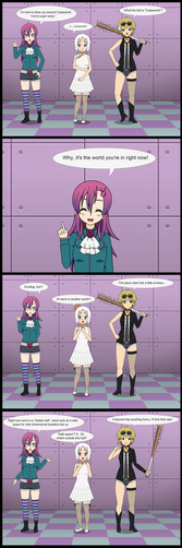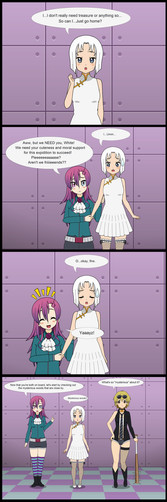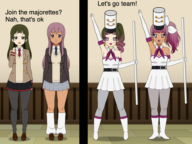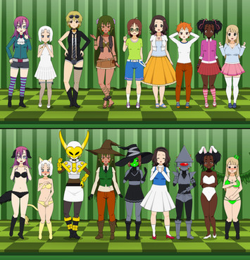 Always in the mood to dress up herself and others, Aiza decided to take on two of 's challenges. This resulted in a zany crossover! (Wellll, not quite so zany. Ruth was too busy admiring Marcy in her cheerleader outfit to wonder if Kimara's elf ears were real XD)