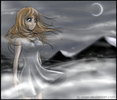 I drew Orihime in her episode 125 clothes. I just realized it looks like she's sticking her finger into her ear or something...>w<;; That wasn't intentional or anything.Art © Me