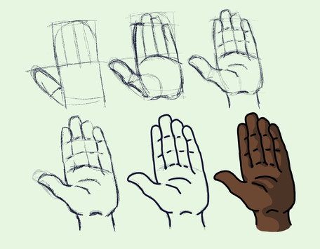 @smolbabysepticbean on Tumblr asked:"How do you draw hands? I'm trying to find my art style and I really like to draw cartoon-y people. I also suck at drawing hands haha"