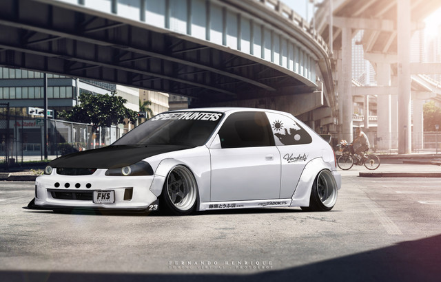 A vector illustration of Honda Civic coupe (EJ/EM) crusing around.Retro alt version here: sta.sh/0221g4va7724