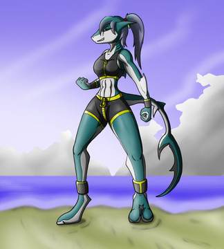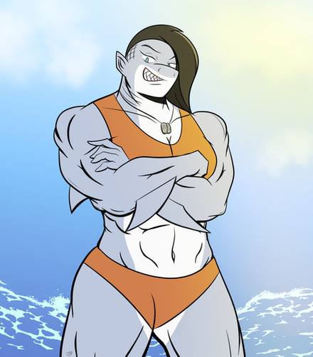 #anthro #beach #bikini #buff #chica #female #furry #gal #girl #mujer #muscle #muscular #shark #swimsuit #tiburon #wereshark #sharkini