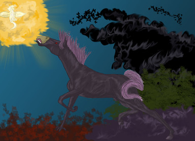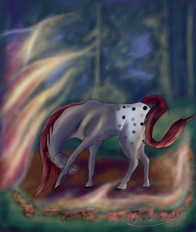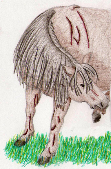 My life has never been wonderful I was always locked up in a dark stall and beaten when I couldn't do as the men wanted. They starved me nearly to death and worked me until I collapsed. I finally managed to slip out of the burning thing around my neck they called a rope and took off running until I could not run anymore which brought me to this place the forest. Blood trinkled down my hide. I slightly look up to see the surface of the treetops light up with a mysterious light I'm not sure what it was I was too weak to think really. Maybe it was the heavens calling me home to where my mother was … I hoped so.So this is something I got inspired to do this because I've heard way too many horses abused for the last month animal abuse in general so this is my thing on animal abuse. I don't like it if you can't be nice to animals don't own or buy them.
