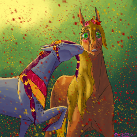 I've always wanted to draw Jean more, but I for some reason struggle with him alot him being a bigger horse breed I suppose, I do need to practice more on other breeds.But I am happy with how he turned out here, (I hope I got his markings right I was going by memory on this one🤣) I'm not sure how I felt about the background though,