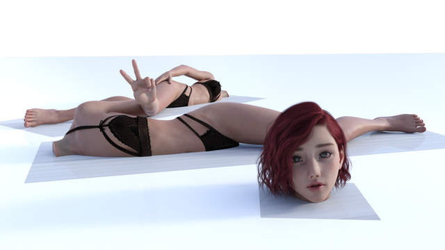 ok last one of the contortion ones.This time in high res with dforce and everything mentioned before. Look pretty real i gotta say. Though I am sooooo confused as to why everytime I do a super high quality render of this character, there's something printed on her forhead?!?! not going to PS this img but may have to in the future if i were to really to make them. I'm soooo confused. help?