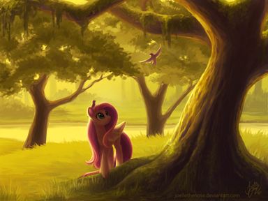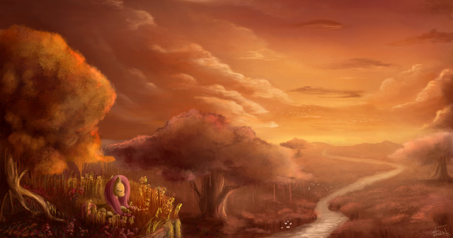 Finally the Impact of this is clear to everyone. We all get a warm feeling and a sense of curiosity (maybe the curiosity is just me but yea xD) and Fluttershy's facial expression, although lacking the mouth, makes it all even better. The level of detail in the picture is mind blowing as well as you can see the leaves falling from the trees. Frankly, for this picture there's nothing else to say except the fact that it is one of those pictures which you can stare at and it will make you happy. Barely ever get to see pictures that amaze you as much as this one does.