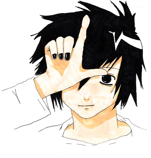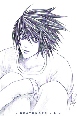 Ahhh!!! FINALLY!!! I did a DeathNote fanart that I'm happy with ^____^ Whee! L = <3Pencil on marker paper, colored in Photoshop.
