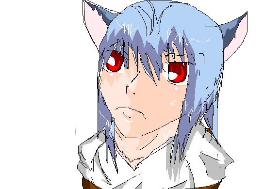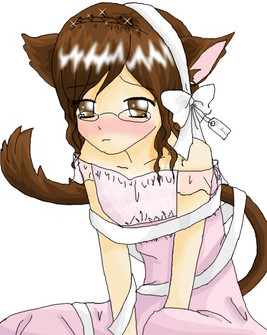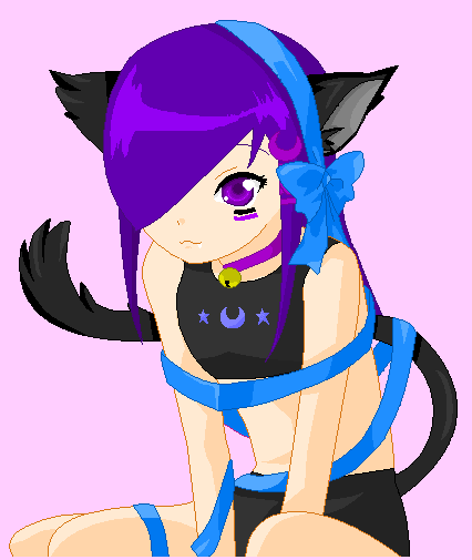 OK, it's not Yami Bakura with his shirt falling off, but Ryou does look adorable! His ears and tail are a light pink, and someone was nice enough to wrap him up in blue ribbon for my birthday. Only 12 more days!BTW: he's wearing a black dress and shiny black shoes.