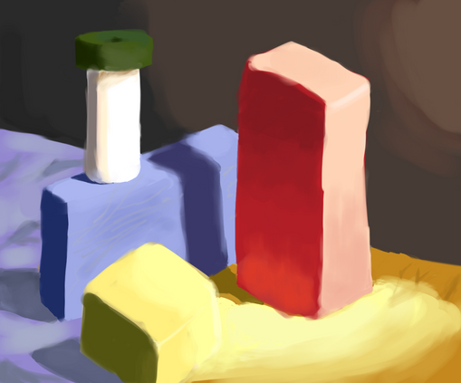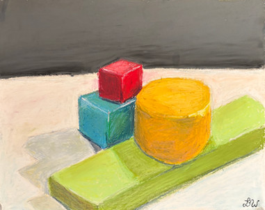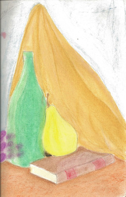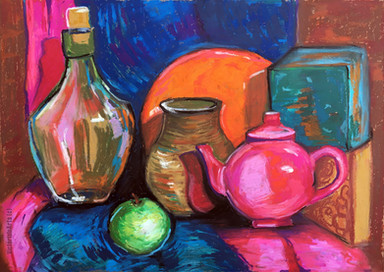My second attempt experimenting with pastels in my Drawing II course, the assignment required the use of complementary colors. I was pressed for time, so I quickly sketched out the sparse still life and began applying color in rough strokes. With my limited set of pastels and the added restriction of the assignment, the colors I was forced to use generated a bold and vibrant look that surprised me. I really enjoyed working on this piece, as I was able to let go of my perfectionistic side for a change; the "messy" look might be the perfect style for me!--------------------------