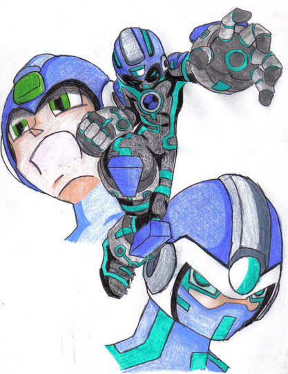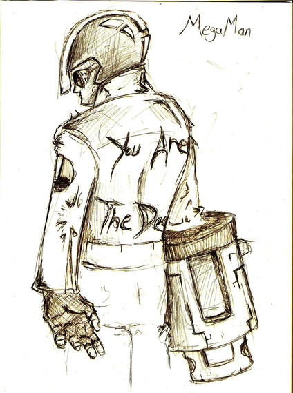 Anyway, I took inspiration from many sources for this, and tried to make Mega look quite young. I also tried to make him look a little more junk-y than most renditions, considering that he was made of leftover materials by Light when he was in an emotional state >.> Not too junky though, 'cause Light would probably take care too much to just throw Mega together =3